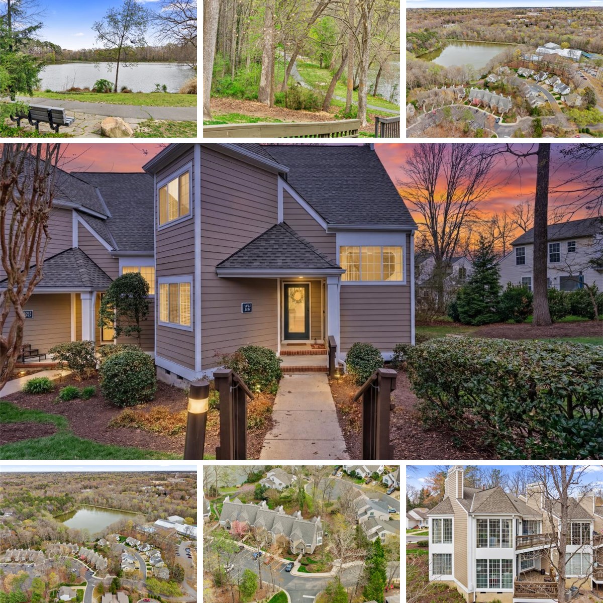Welcome home to this bright and airy end unit condo in Raintree Commons! Located on the second level and offering scenic views that include Gregory's Pond! This charming home offers a warm and inviting atmosphere that invites the outdoors inside with its panoramic floor to ceiling windows and doors. Two bedrooms and two full baths, an open floor plan with an entertaining friendly layout that includes a cute kitchen with pass through to dining area that adjoins the spacious family room with gas fireplace. Elegant built ins, crown molding, and columns add a touch of class to this home! Spacious bedrooms including the primary that has balcony access, two closets and a newly renovated en suite bath! Thoughtfully designed with tiled walk in shower, expansive granite vanity top, large mirror, tile floor, and linen closet. Other features include: New HVAC with air purification system (2024 still under warranty and just serviced) , new 50 gal water heater, updated dishwasher and microwave, all appliances convey with the property, fantastic location - 10 minutes to Short Pump, minutes from Gayton Crossing Shopping Center, and located next door to the Swim and Racquet Club, Paved walking trails, private and quaint community with only 30 units, plenty of parking, gorgeous landscaping, well maintained and highly responsive HOA, spacious balcony with retractable awning. Rare opportunity to get a maintenance free home in this location!